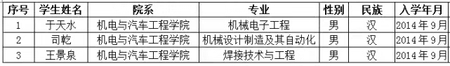 根据《Beat365中文官方网站关于做好2016年国家奖学金评审工作的通知》要求,在公平、公开、公正基础上,经本人申请、班级评议、学院审核,最终评选出3名2015--2016学年度国家奖学金获得者。现对评选结果进行公示。入队获奖名单存在异议,请在公示期间内与机电与汽车工程学院联系。