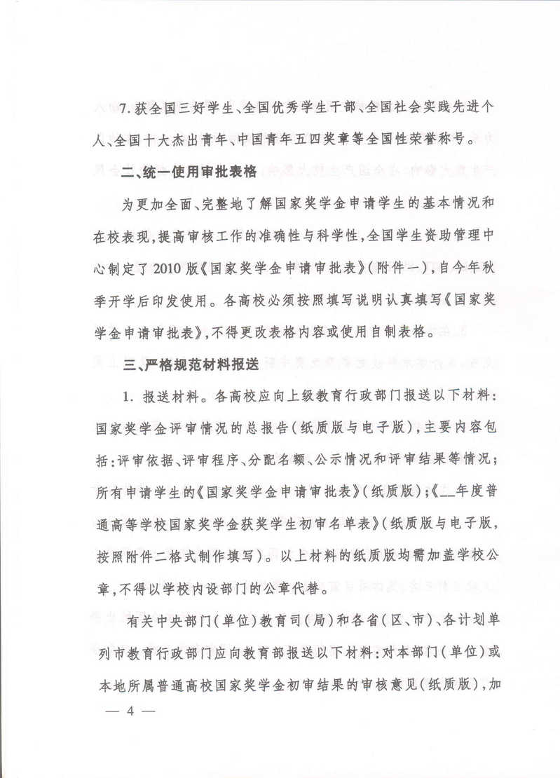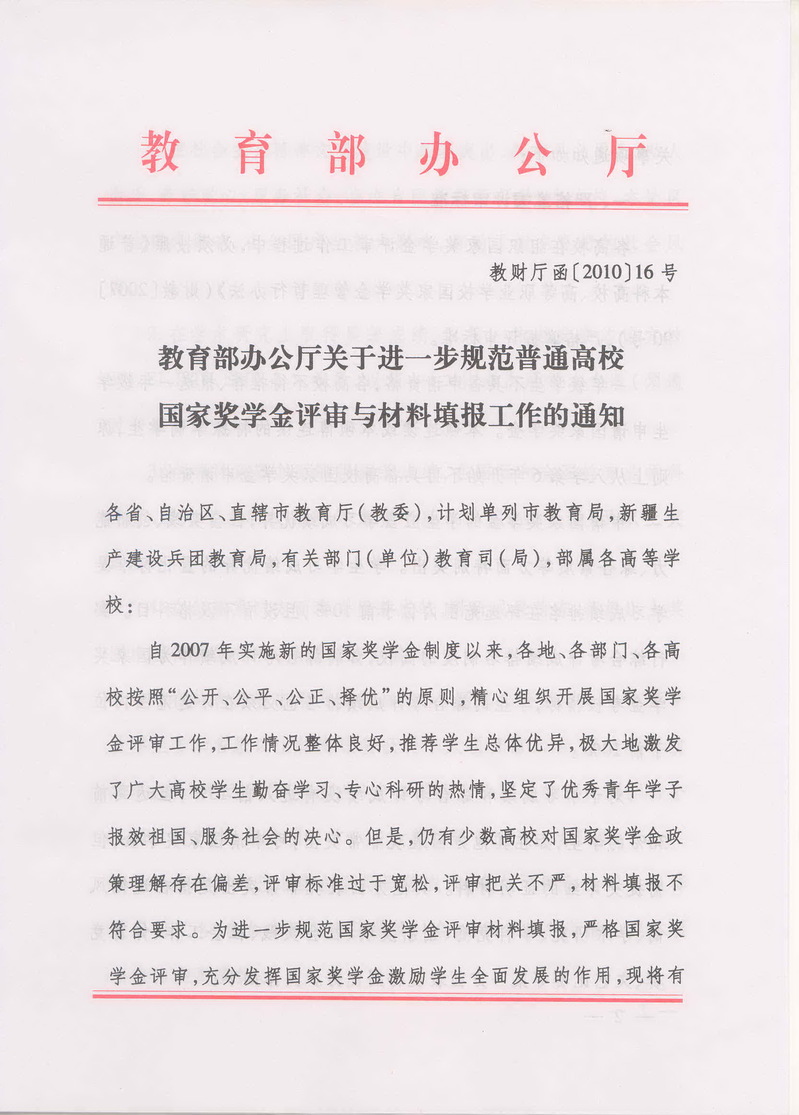 教育部办公厅关于进一步规范普通高校国家奖学金评审与材料填报工作的通知