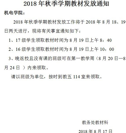 关于发放教材的通知