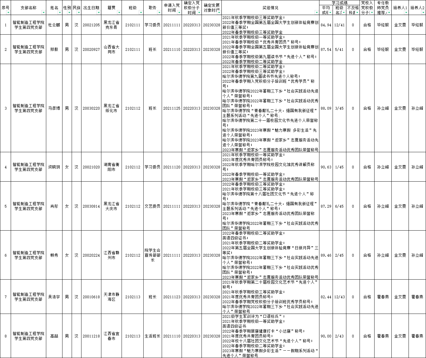 经Beat365中文官方网站学生第四党支部委员会讨论,报智能制造工程学院党总支备案同意,将杜云鹏等8名同志列为发展对象。根据发展党员工作有关要求,现将有关情况公示如下: