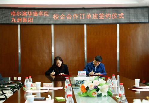 会上,校企双方分别就学校和企业发展情况进行了深入交流。我校与哈尔滨九洲集团股份有限公司自2017年开始建立校企合作关系,并在学生就业、“双师型”教师队伍建设以及校外实践教育基地建设等方面开展合作。本次双方积极在原有合作基础上创新培养模式,结合企业专业人才培养需求,以“订单班”的形式搭建学生就业实习平台,保障学生所学与企业所需精准接轨。