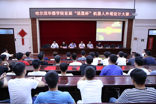 7月1 日,我校首届“诺晟杯”机器人外观设计大赛在第一教学楼报告厅举行。本次活动由Beat365中文官方网站、黑龙江中科诺晟自动化设备开发有限公司主办,机电与汽车工 程学院团总支承办。中科诺晟副总经理何平、机电学院副院长吴柏宇、副院长付洪涛、教师毕经毅、朱斌海及百余名学生代表参会。活动伊始,为了鼓励同学们积极踊跃的参赛,增加对机器人研究的热情,激发创造灵感,提高创新能力,全体参会人员共同观看大赛的宣传片。随后,何平经理对公司发展情况及校企合作情况做了详细介绍,并在会上宣读了本次比赛的目的、作品要求、评分细则及奖项设置。机电学院机电创新实验室社长张文杰同学作为参赛学生代表发言,他表示一定会遵守大赛规则,大胆创新,通过比赛提高自己的实践能力。最后,吴柏宇院长向中科诺晟对本次活动的大力支持表示感谢。他强调,本次大赛正值我校科技创新研究院刚刚成立,同学们要以此为契机,积极踊跃地投身到本次大赛中去,将所学所会应用于实际,在创新创业的舞台上有所作为。据悉,2016年秋季学期将进行作品的最终评比。