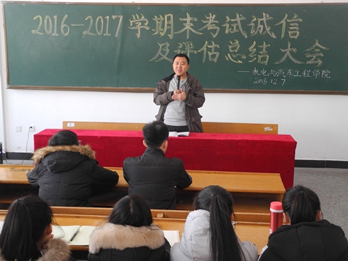 华德报讯(通讯员 李滨)12月7日,机电与汽车工程学院在第四教学楼401教室组织召开2016-2017学期末考试诚信大会,学院副院长付洪涛、团总支书记范雪阳出席,全体学生会成员参加会议。