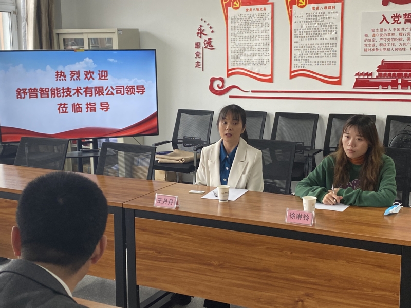 我校校长助理兼机电与材料工程学院院长李长威及有关部门、学院负责同志;舒普智能技术股份有限公司人力资源部经理王丹丹、招聘专员徐琳铃出席会议。