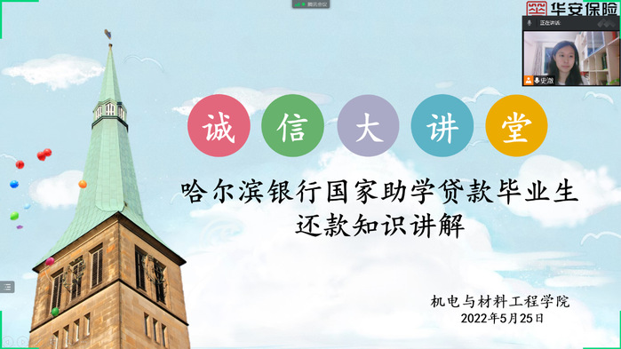 为让毕业生能够了解国家助学贷款资助政策,普及征信、金融等相关知识,增强法律意识,履行国家助学贷款合同,同时养成各位同学的诚信素养与行为,5月25日机电学院召开2022届毕业生国家助学贷款诚信教育主题大会,全体办理国家助学贷款的2022届毕业生参会,并邀请了机电学院党总支书记王郁黎共同参会。会议由机电学院负责学生资助工作的辅导员史澈老师主持。