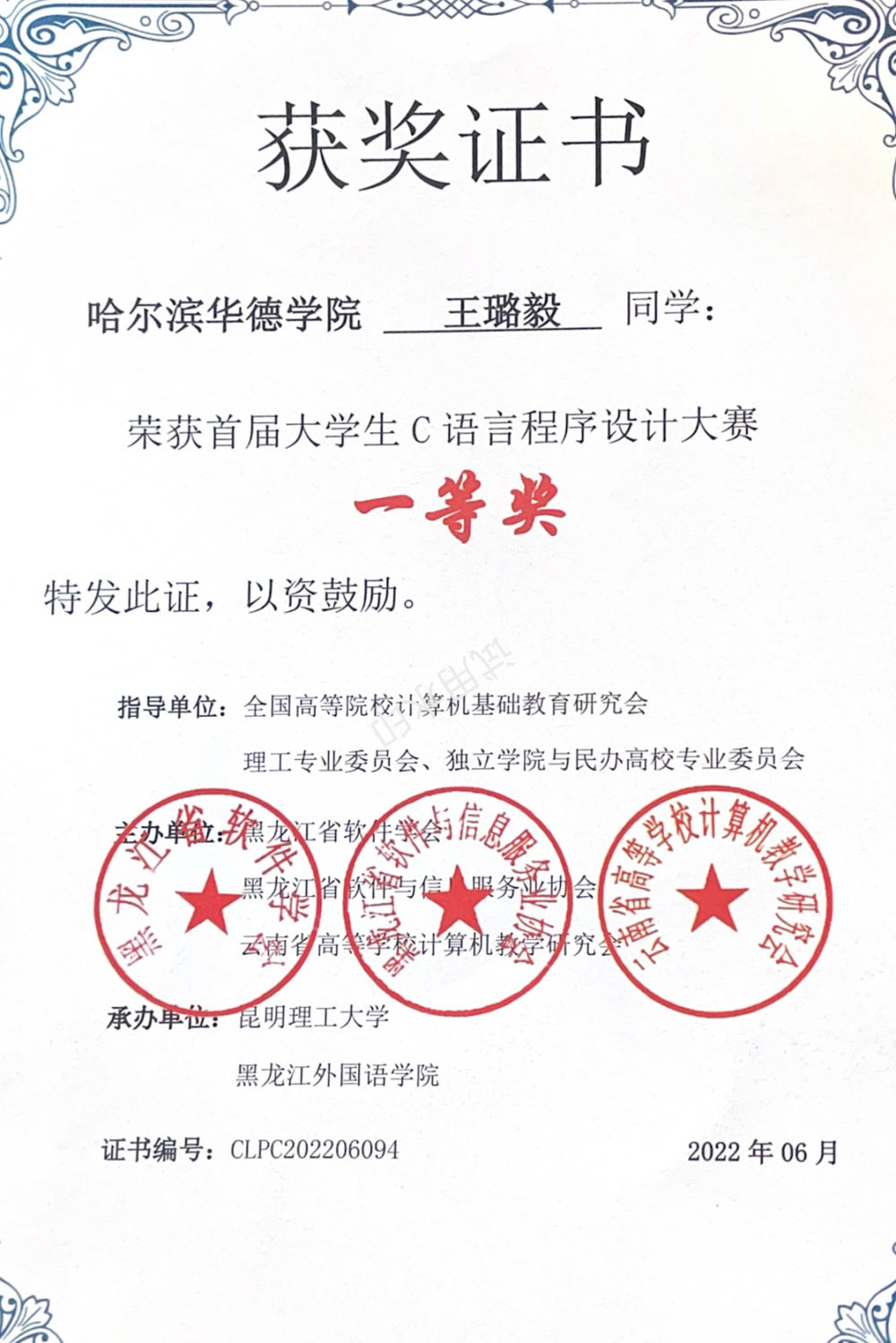 “竞赛是检验能力的试金石。”大学期间,王璐毅的名字频频出现在国家级、省级奖项名单中:全国大学生C语言程序设计大赛一等奖、全国大学生数学建模竞赛二等奖、“京东方杯”智能制造技能大赛全国海选赛二等奖、东北三省数学建模联赛一等奖......一系列荣誉的背后是她不断的努力和坚持。