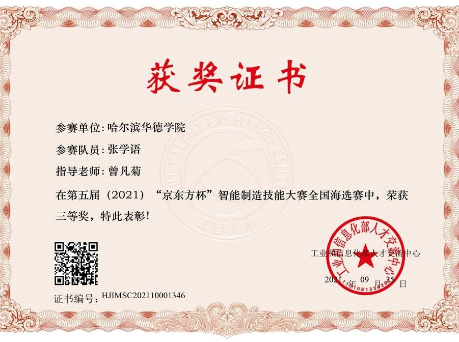 第六届“京东方杯”智能制造技能大赛全国海选赛获二等奖1项;