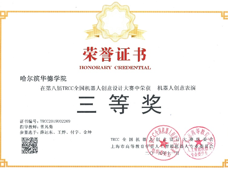 第八届TRCC全国机器人创意设计大赛获三等奖1项;