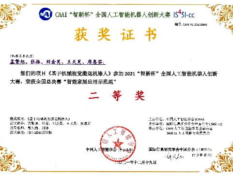 2021“智新杯”全国人工智能机器人创新大赛二等奖1项,三等奖1项;