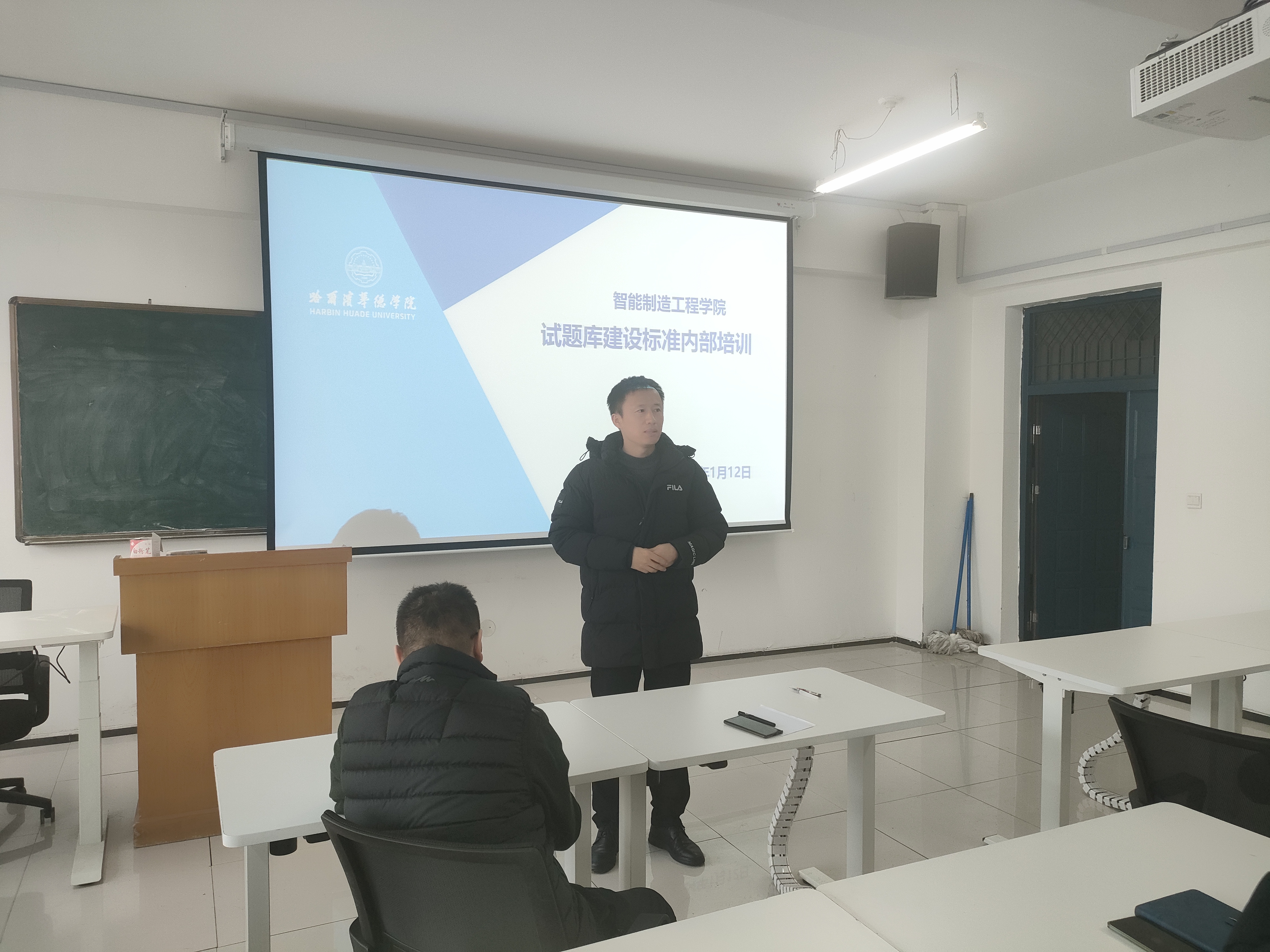 培训前,副院长朱斌海首先向参会教职工介绍了本次培训会议的目的及意义,是集团与学校为强化能力导向的考核方式,深入推进OBE教育教学改革,优化考试内容,规范题库建设职责、流程和标准,鼓励跨校协同出题,强化数字化考核方式,实现以考促学、以考促教,特制定本标准。