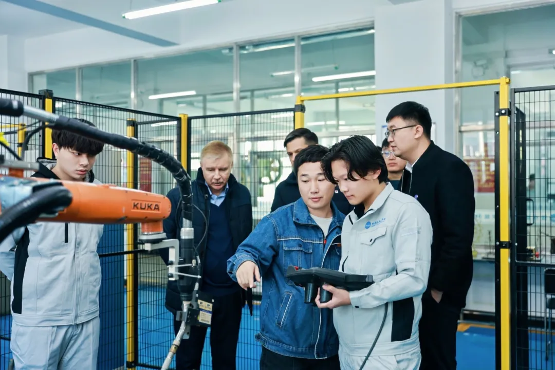 专家深入学校现代制造与加工技术训练中心、现代焊接产业学院、浙江巴顿焊接技术研究院院士工作站实地指导学生实验操作,与学生进行面对面的现场交流。同学们积极展示实践成果,并就焊接工艺调试、设备使用等问题向院士和专家请教。郭瑞院士和斯维亚托斯拉夫主任细致点评,提出了多项具有针对性的改进建议,使学生对焊接工艺的实际应用有了更深刻的理解。